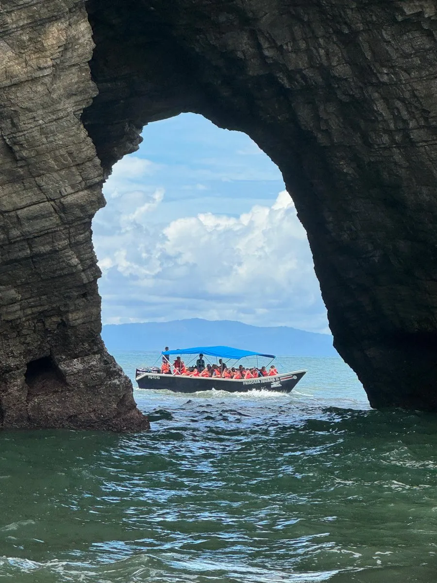 2. Visita a Cavernas o Playa Ventanas Exploramos las formaciones rocosas únicas de la zona, donde habitan diversas aves marinas. Entre ellas destacan pelícanos, piqueros morenos, fragatas, garzas y cormoranes, creando un espectáculo natural de vuelo y color.