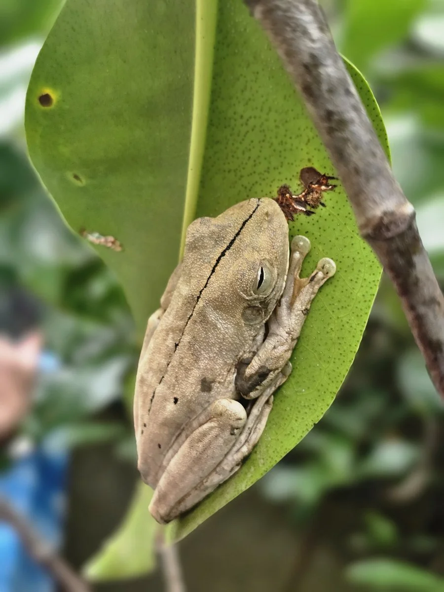• Ranas y serpientes que se camuflan entre la vegetación.