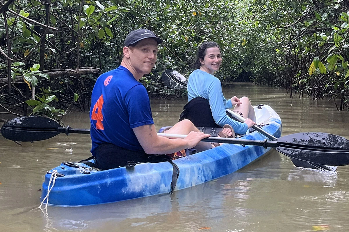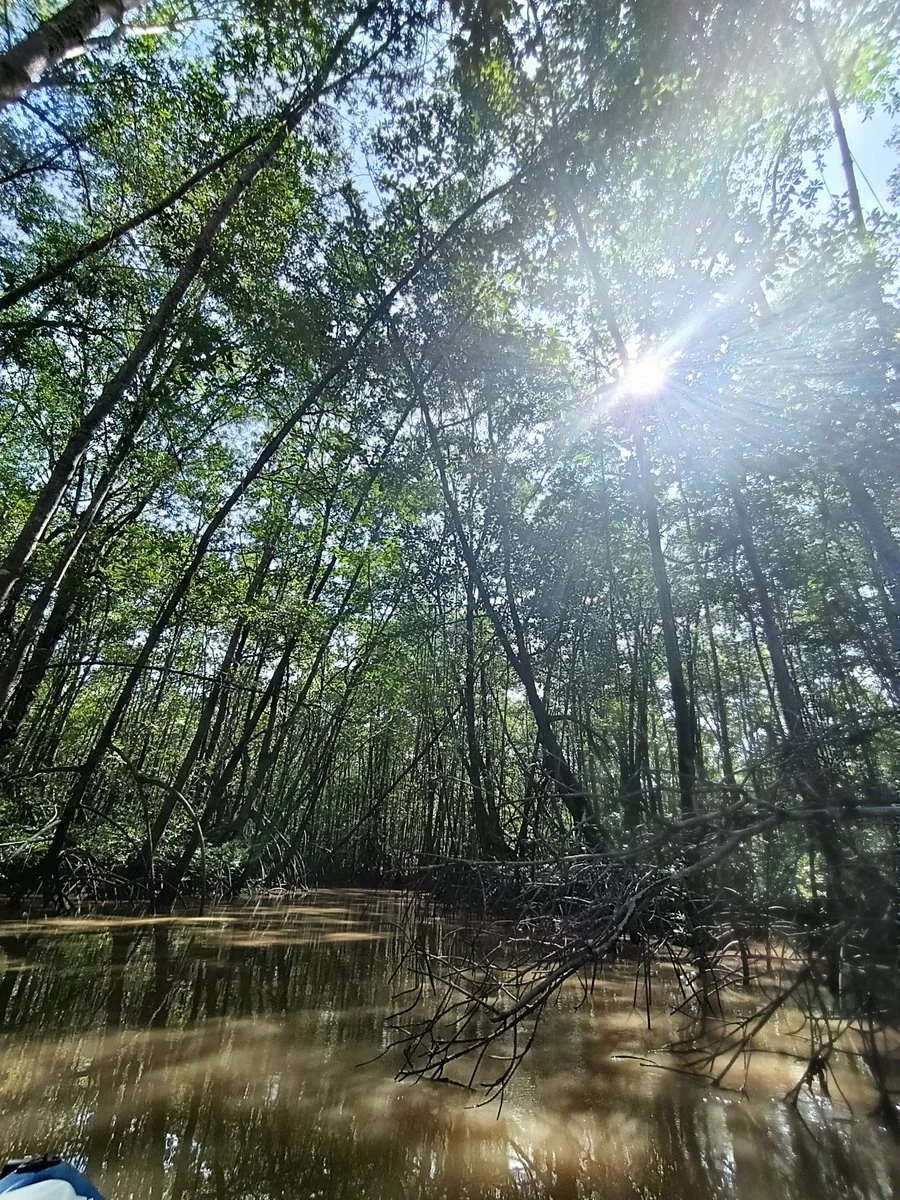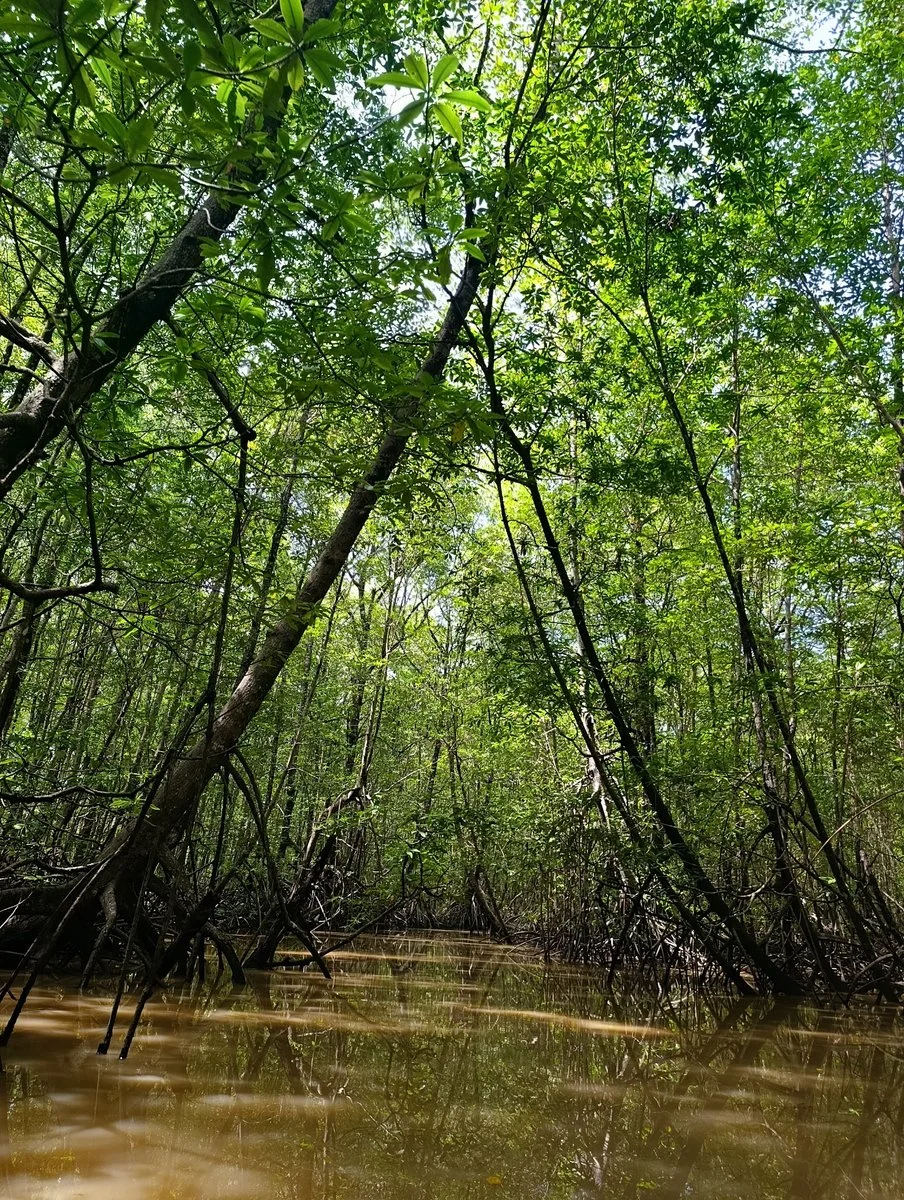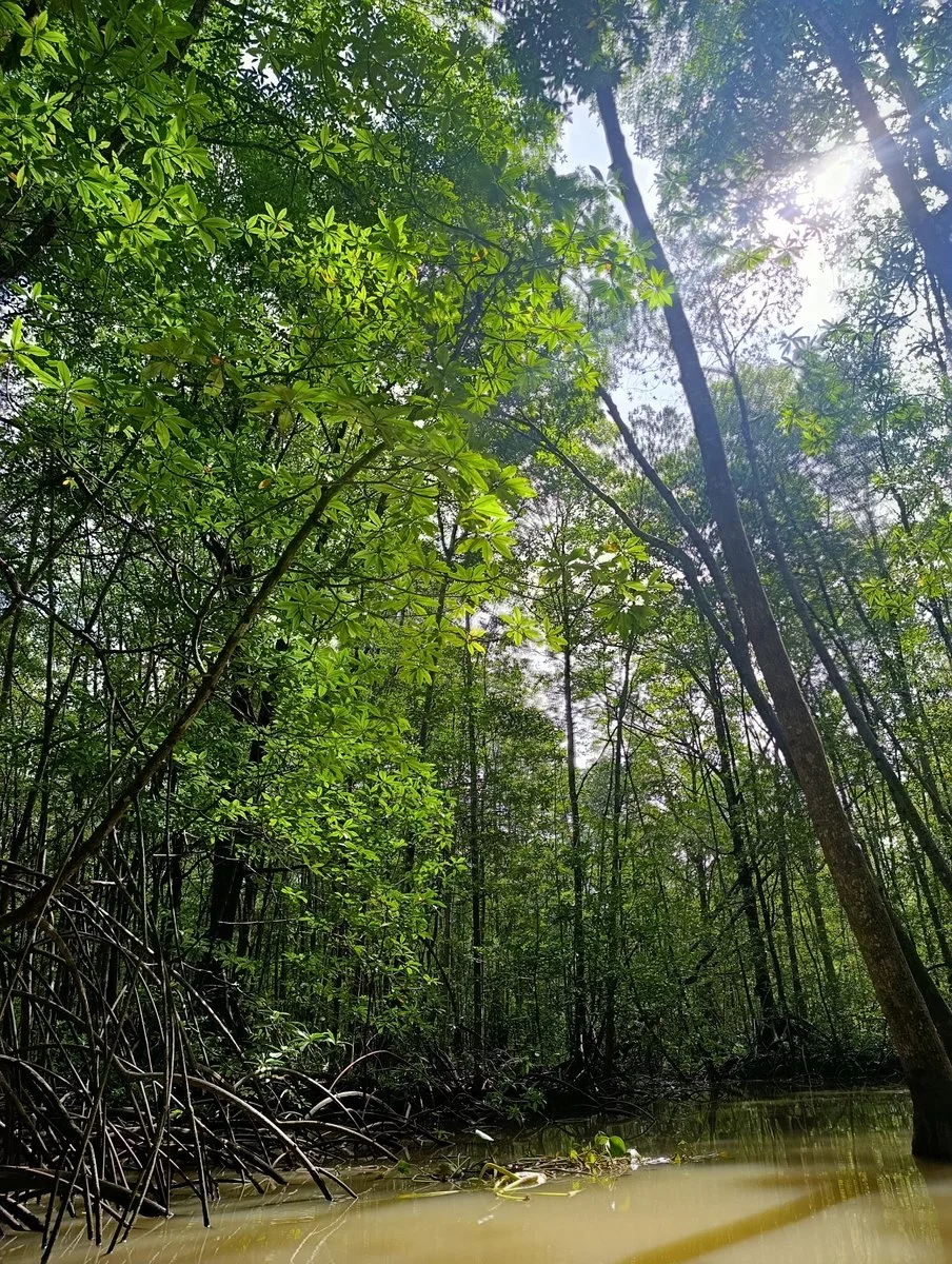 Navegamos por los canales del manglar, rodeados de raíces entrelazadas y paisajes únicos que muestran la importancia de este ecosistema para la vida silvestre y la protección costera.